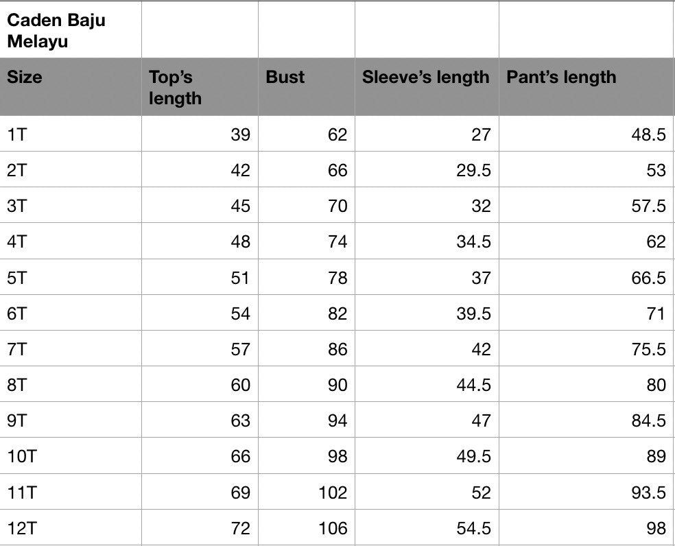 Design: Mandarin collar Baju Melayu with buttons and top left pocket. Comes with elastic waistband for pants thus stretchable.